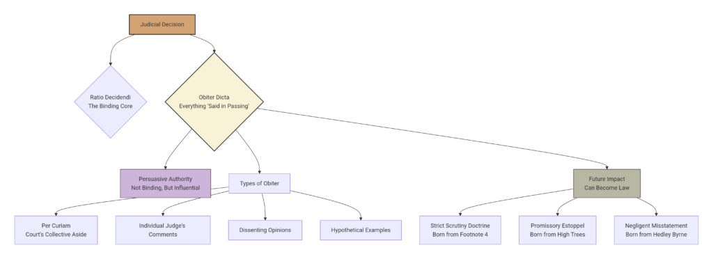 Here’s the beautiful paradox of Obiter Dicta. In a system built on binding rules and strict hierarchies, the most transformative ideas often arrive not as commands, but as whispers. A footnote here. A hypothetical there. A dissenting judge’s lonely cry.