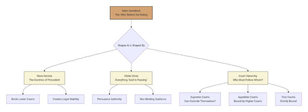 Before we dive deep, let’s orient ourselves. Ratio Decidendi doesn’t exist in a vacuum—it’s the centerpiece of a fascinating ecosystem of legal ideas. Here’s how it connects to the world around it: